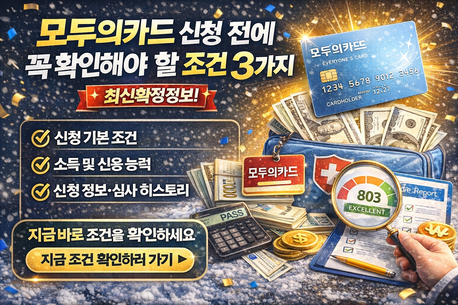 “모두의카드 신청 전에 꼭 확인해야 할 조건 3가지 최신확정정보!”모두의카드를 신청하려고 준비 중이라면 잘못 준비해서 심사 거절이나 발급 지연을 겪을 수 있다는 사실, 알고 계셨나요?신청 조건만 명확히 확인해도 발급 성공 확률을 크게 높일 수 있습니다. 지금 이 글을 끝까지 읽고 꼭 챙겨보세요.모두의카드 신청 전 조건, 놓치면 불이익!지금 바로 조건을 확인하세요 지금 조건 확인하러 가기 모두의카드란 무엇인가요?모두의카드는 일반 신용카드로, 다양한 소비 혜택과 카드사 서비스를 제공하는 금융 상품입니다. 카드사 내부의 신용 심사를 거쳐 발급되며, 신청 조건을 충족해야 승인이 가능합니다.많은 분들이 “조건이 낮다”고 생각하지만, 실제로는 심사 기준이 있어 미리 준비하지 않으면 신청 후 거절될 수 있어요. ..
