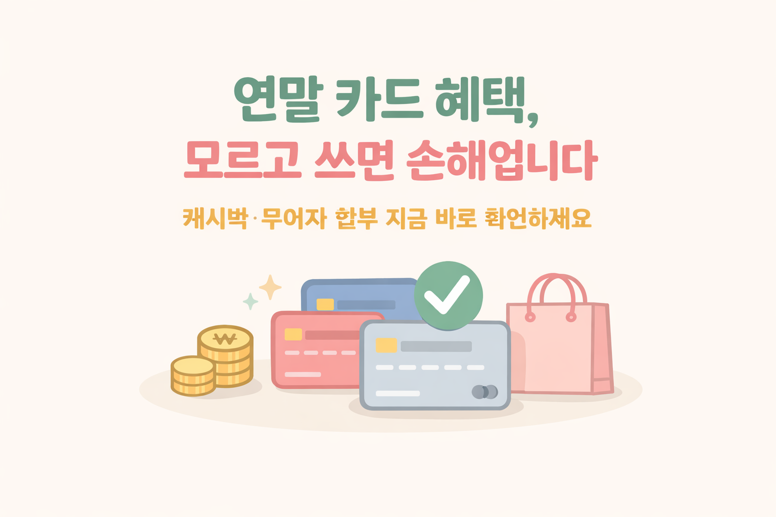 “연말 소비 전에 꼭 확인해야 할 카드 혜택, 놓치고 계시진 않나요?”연말 소비 전에 카드 혜택을 확인하지 않으면, 같은 금액을 쓰고도 수십만 원을 더 지출하게 될 수 있습니다.선물, 모임, 쇼핑까지 소비가 몰리는 연말에는 카드 선택 하나로 실제 부담 금액이 크게 달라집니다. 지금 이 글을 끝까지 읽고 반드시 확인해보세요.연말 카드 혜택, 모르고 쓰면 손해입니다캐시백·무이자 할부 혜택 지금 바로 확인하세요 무료로 확인하러 가기 연말 소비 전에 카드 혜택을 꼭 확인해야 하는 이유연말 카드 혜택은 평소보다 혜택 강도가 높고 적용 기간이 짧은 경우가 많습니다.같은 쇼핑·같은 결제라도 카드 혜택을 활용하면 실제 지출 금액은 크게 달라집니다.확인하지 않고 결제하는 순간, 받을 수 있는 혜택은 사라집니다. 연말 ..