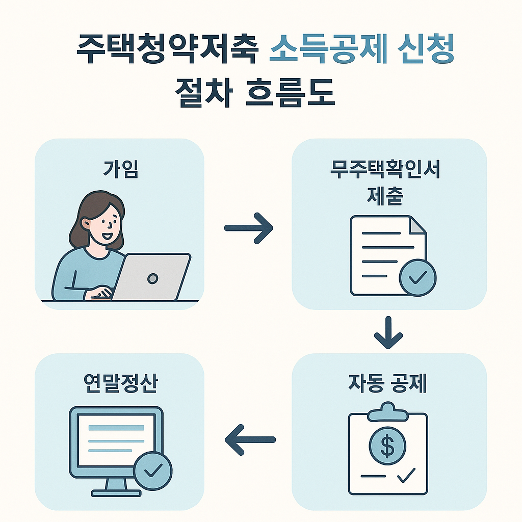 - 신규 가입 또는 기존 주택청약종합저축 전환 가입 가능 - 연말정산 시 납입액 자동 공제 반영 - 무주택 확인서·소득 증빙 서류 제출 필요