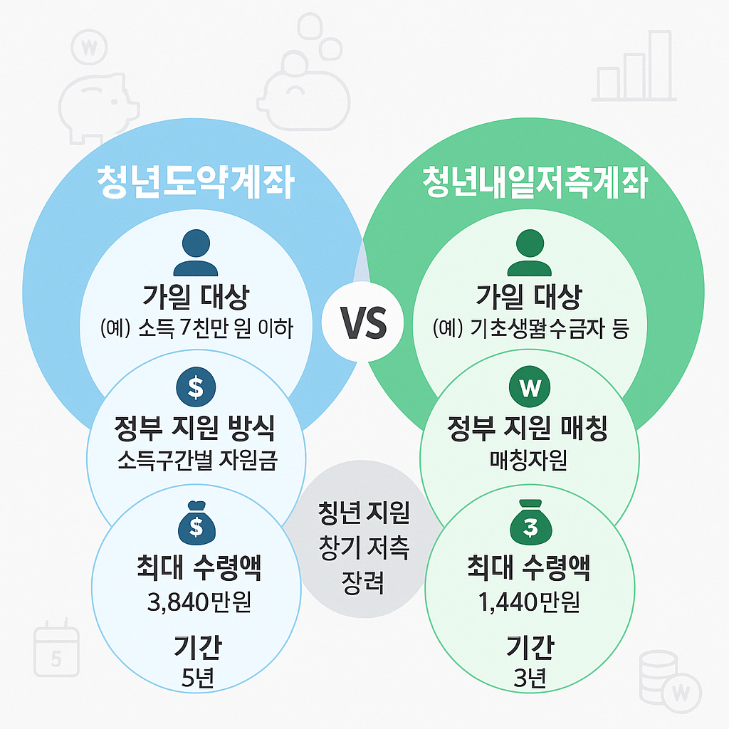 청년도약계좌 vs 청년내일저축계좌 2025 | 조건·이자·세금 비교 총정리