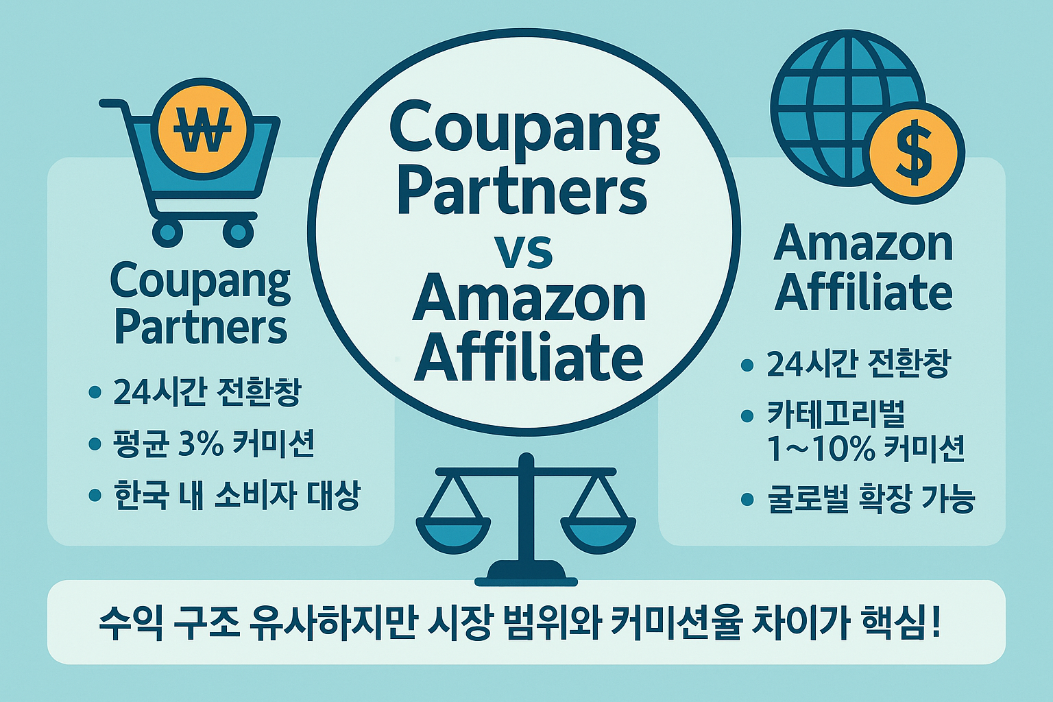 쿠팡 파트너스 vs 아마존 어필리에이트: 수익 구조 완벽 비교