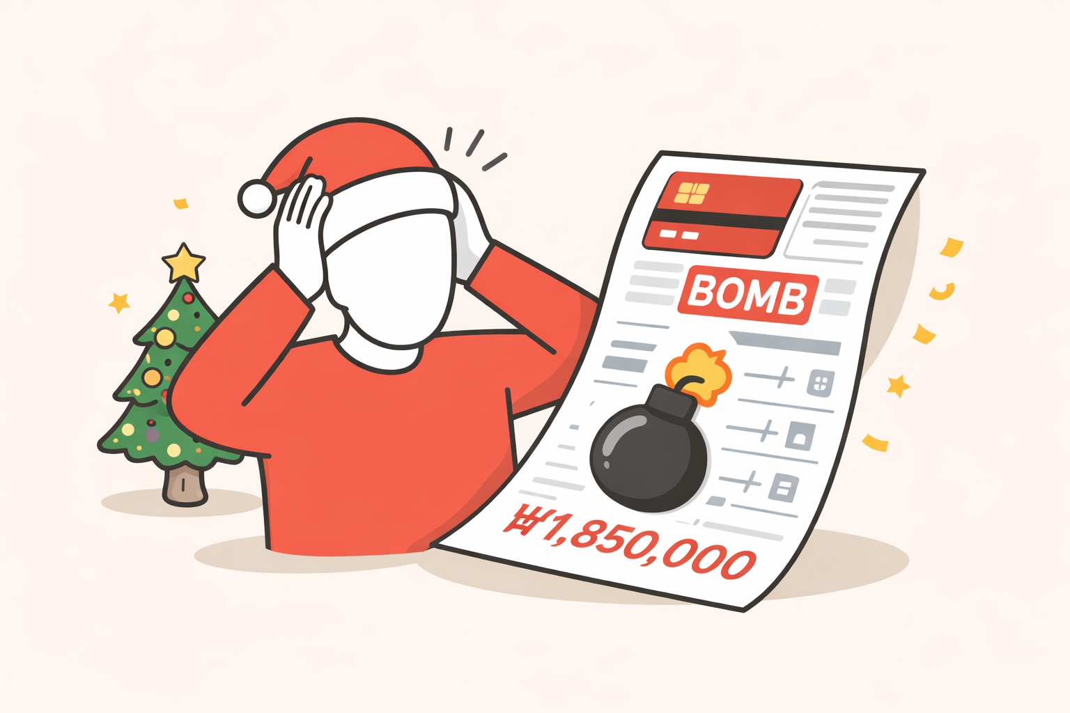 “크리스마스 지나고 카드값 보고 놀란 적 있으신가요?”연말 분위기에 휩쓸려 쓴 돈은 기억에 잘 남지 않지만, 카드 결제일에 찍힌 숫자는 현실입니다.특히 크리스마스 이후에는 할부·리볼빙·카드 관리 습관에 따라 다음 달 카드값이 ‘관리 가능한 수준’이 될 수도, ‘감당하기 어려운 폭탄’이 될 수도 있습니다.카드값 폭탄은 갑자기 생기는 문제가 아닙니다. 이미 연말 동안 만들어진 소비 구조가 다음 달에 결과로 나타나는 것일 뿐입니다. 크리스마스 이후 카드값이 유독 크게 느껴지는 이유연말에는 선물, 모임, 외식, 여행, 온라인 쇼핑 등 소비가 여러 날에 걸쳐 분산돼 발생합니다.하지만 카드 결제 구조는 다릅니다. 대부분의 소비가 같은 결제일로 몰리면서 실제보다 훨씬 큰 지출처럼 체감되게 됩니다.여기에 할부와 리볼빙..