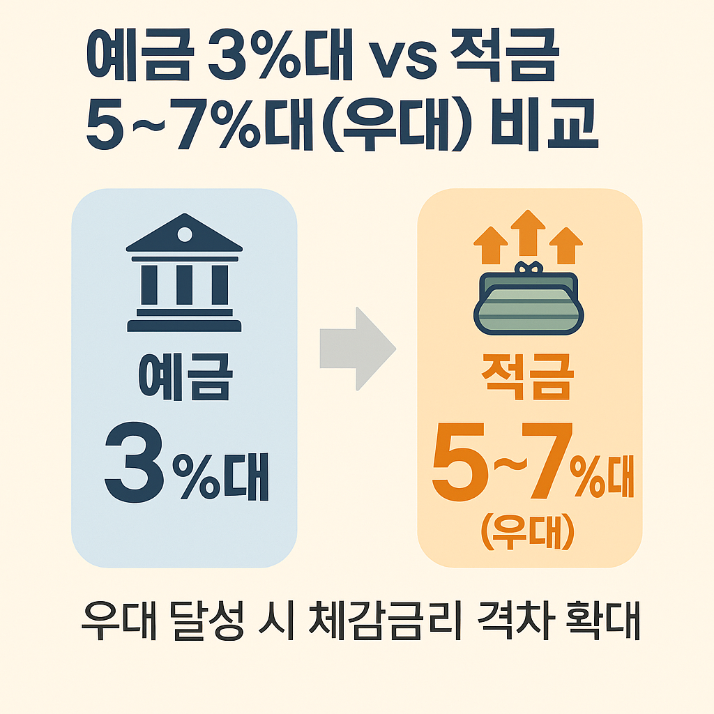 2025년 고금리 예금·적금 비교: 은행·인터넷은행 최고 금리 TOP 10최종 업데이트: 2025-10-17 · 기준금리 2.50%(한국은행) · 예금자보호 한도 1억원(2025-09-01 시행)목차왜 2025년엔 ‘조건별 고금리’가 핵심인가예금 vs 적금: 한 장 표로 끝내는 차이2025 최고 금리 TOP 10 (은행·인터넷은행)우대금리 조건·가입 팁세후수익 계산 & 체크리스트실전 포트폴리오 예시자주 묻는 질문(예보 한도, 중도해지 등)공식 출처/참고문헌1) 왜 2025년엔 ‘조건별 고금리’가 핵심인가한국은행이 2025년 들어 기준금리를 2.50%로 유지하는 가운데(인하 이후 동결), 시중 예·적금은 전반적 하향 안정. 반면 이벤트형·미션형·우대연계 상품에선 체감 고금리가 여전히 등장합니다.기준금리 동..